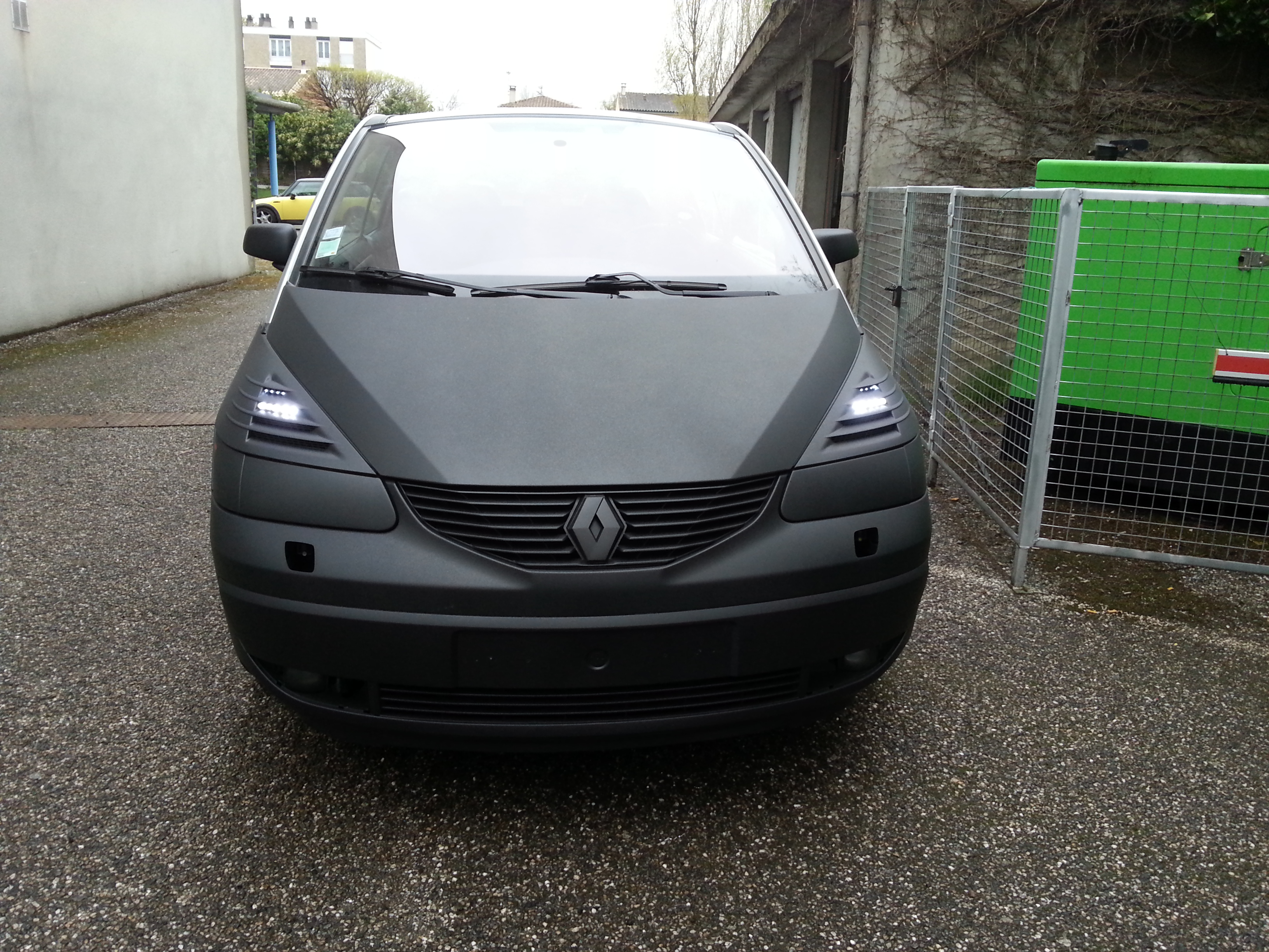 Contrairement a ce que vous pensez le noir mat de mon vaissrau est plus noir que celui des grenouilles et encore plus mat. Actuellement je retire la peinture pour le changer de couleur. Les phares? Je ne vois rien la nuit avec mes les feux diurnes que j'ai créé eclaire suffisement.