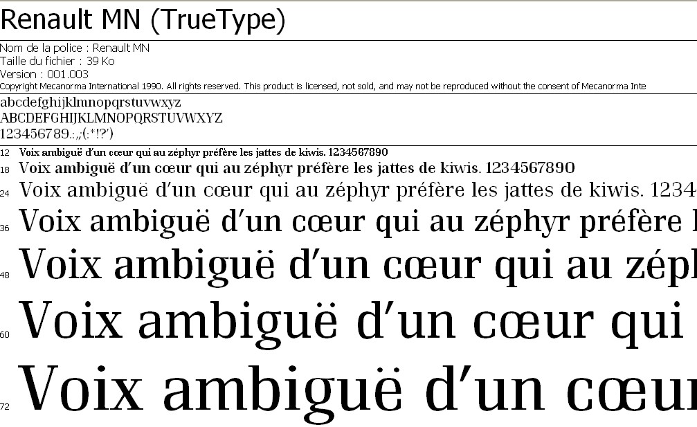 La Police ''Renault'' pour le lettrage AVANTIME :