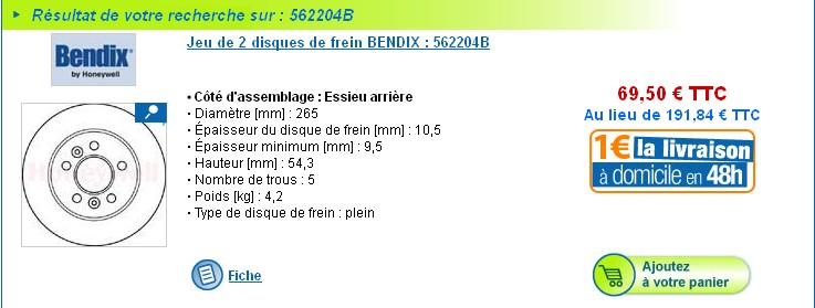 1 BENDIX/Jeu de 2 disques de frein AR - 562204B : 74,98 € l'unité . Pareil