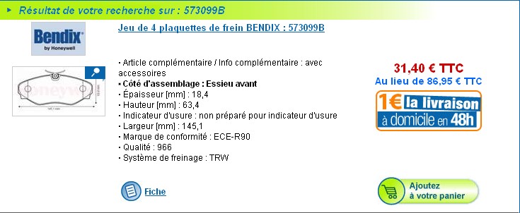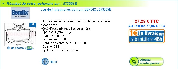 1 BENDIX/Jeu de 4 plaquettes de frein - 573005B : 29,80 € l'unité . Pareil
