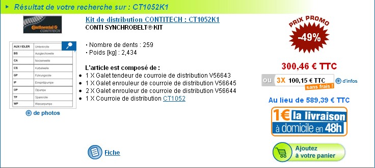 1 CONTITECH/Kit de distribution - CT1052K1 : 110,06 € l'unité