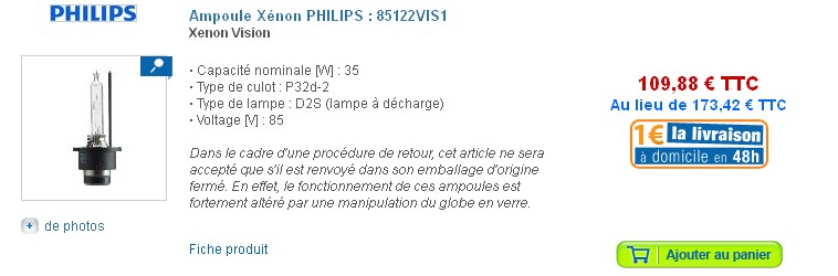 brio77 a écrit :C'est ok pour le xenon Ampoule Xénon PHILIPS : 85122 C1 ! Ça marche beaucoup mieux que le faux Philips Allemand ! :mrgreen: