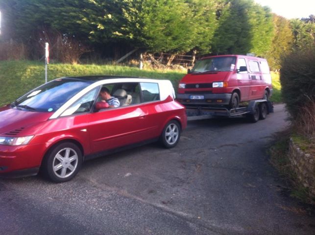 puis prêt a un autre ami pour ramener un vw T4 de Fécamps ("léger" surpoids de 600 kg du PTRA car la remorque seule pesait 1500 kg