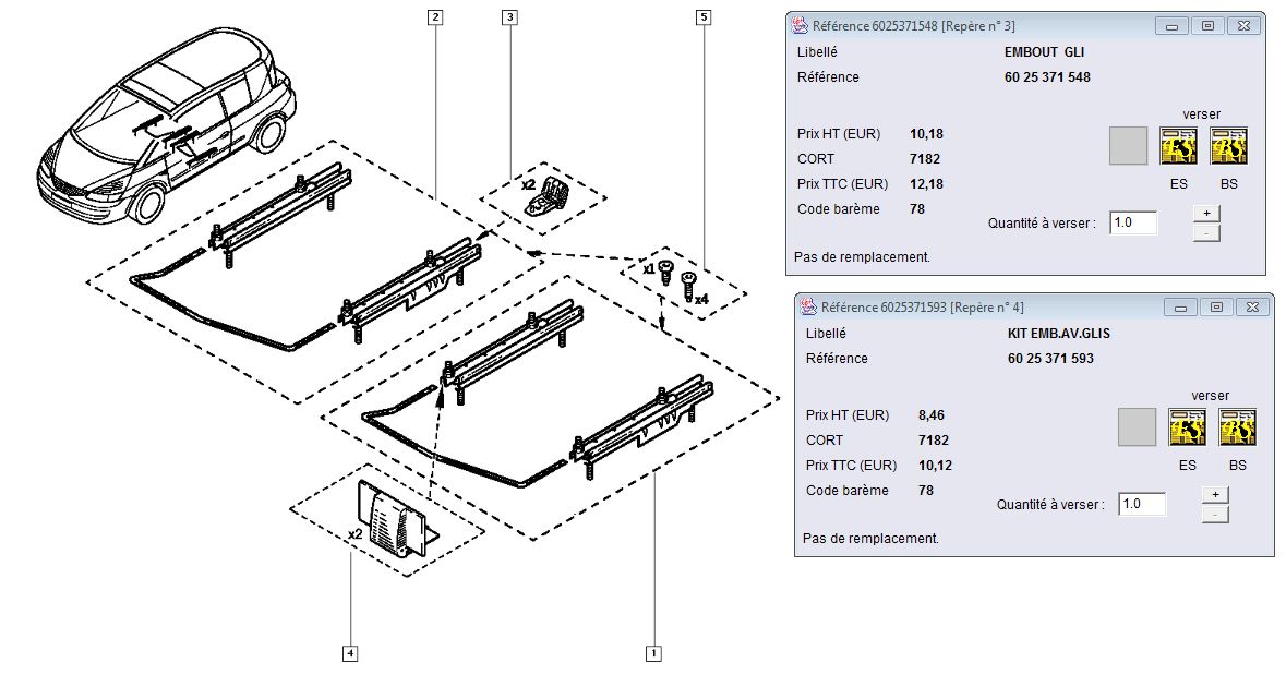 Au lieu de mettre un bouchon, un peu léger (liège), et la distance pour la concession du losange étant quasi identique d'avec "mon" casseur habituel, je fais donc un crochet chez lui ayant vu un V6 bleu en triste état ( imat:17, sur LBC, au Tallud) brulé sur toute la partie avant droite, je pense trouver la plaquette de glissière de remplacement. Bingo de la plaquette il y a le choix et le bonus c'est: cadeau