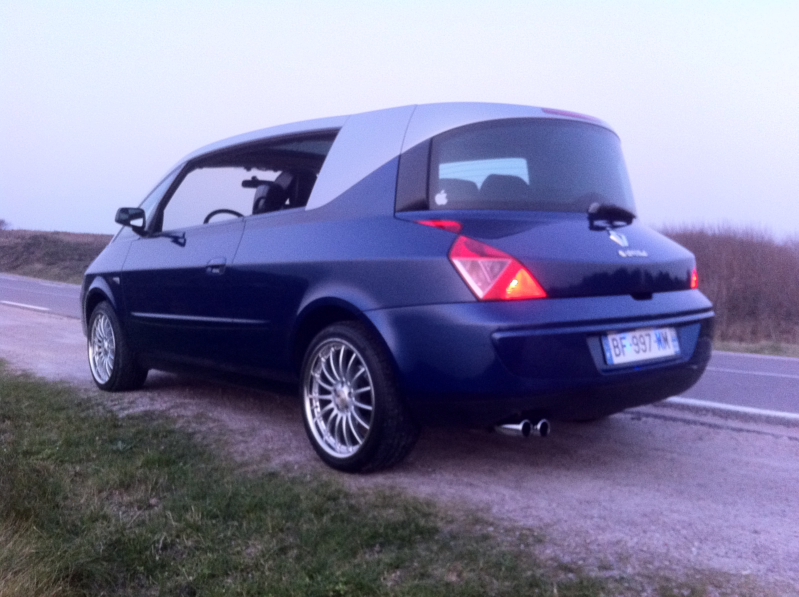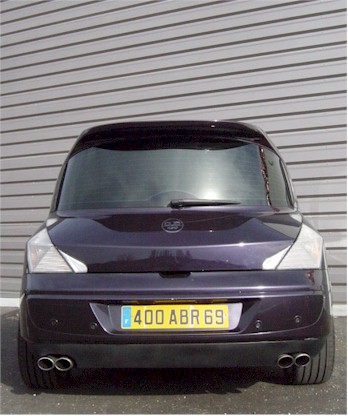 On peut remarquer l'absence du "Losange Renault" sur la calandre, les feux type"Cristal" ainsi que 2 "feux" rajoutés, aileron supérieur et 2 doubles sortie échappement .