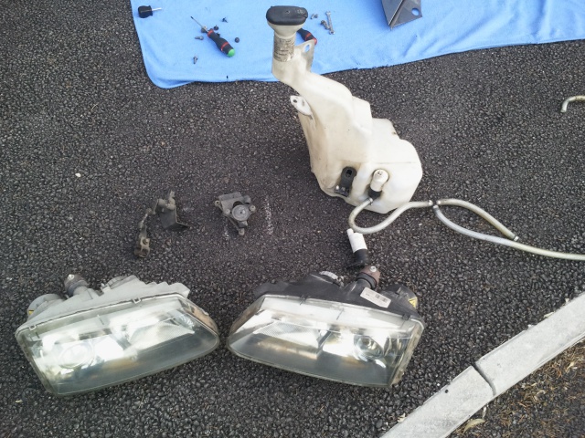 Pour le montage du bocal de lave glace pas de problèmes. Comme la voiture est pré-cablé, il y a qu'a juste à brancher les fiches, et pour les laves phares, c'est pareil, ils y étaient d'origine mais pas raccordés, pas compliqué à faire ça non plus.