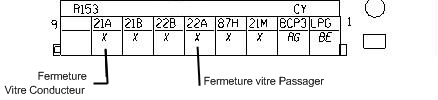 Emplacement des connecteurs: L'alimentation du module de remontée des vitres on utilise R153 LA 23