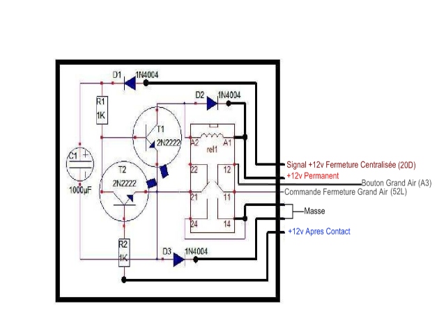 Donc relier 20D à 21A et 22A, et des que l'on appuie sur la fermeture centralisée, on ferme aussi les vitres avant.
