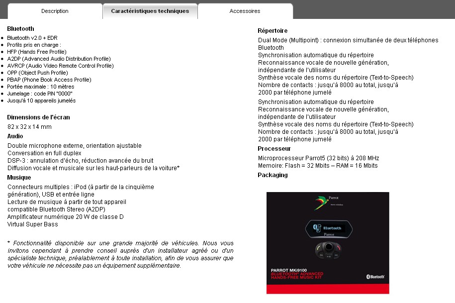 - Composition du kit parrot 9100
