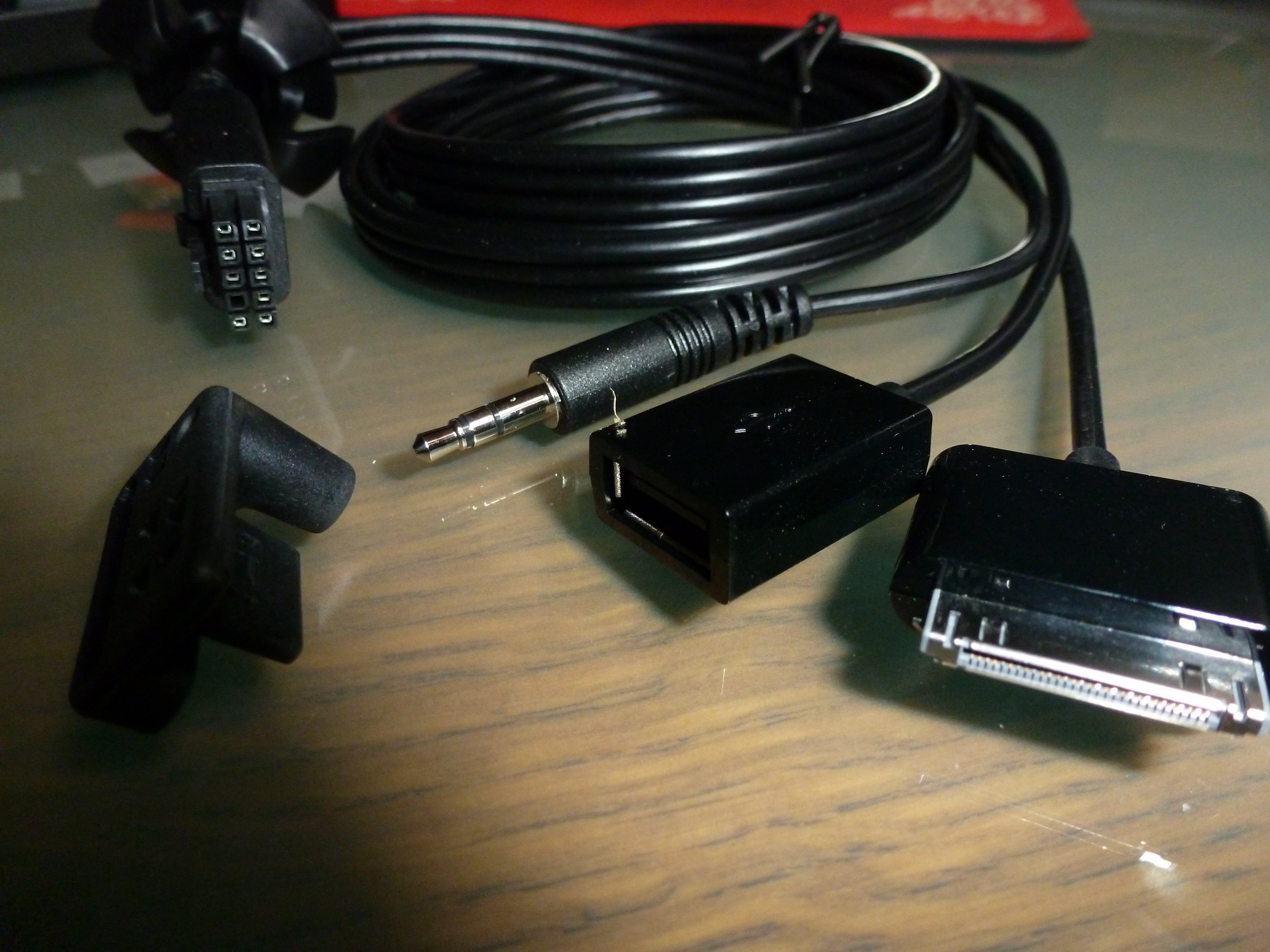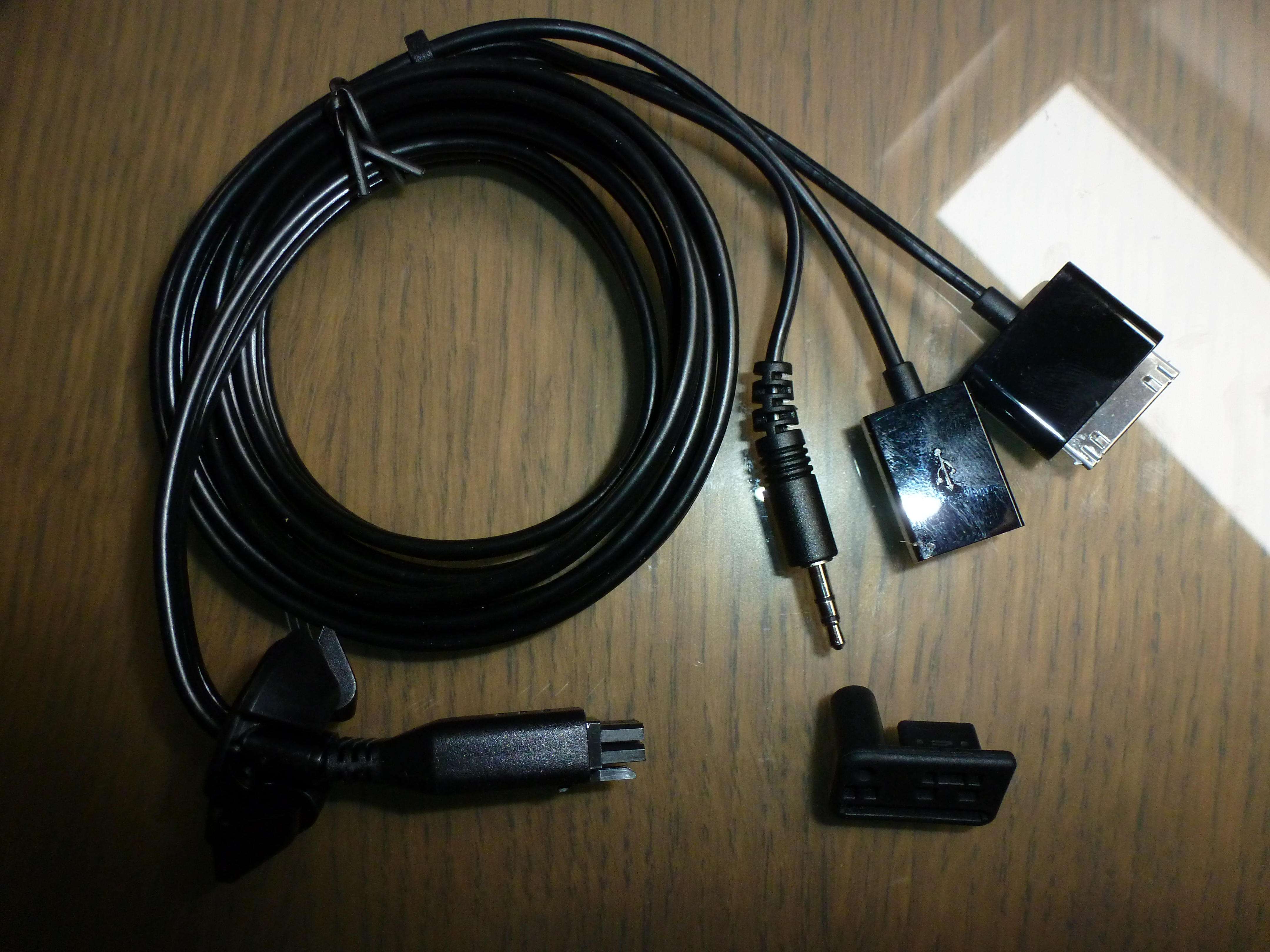 - Câble pour auxiliaires (iphone, ipad, etc... ).