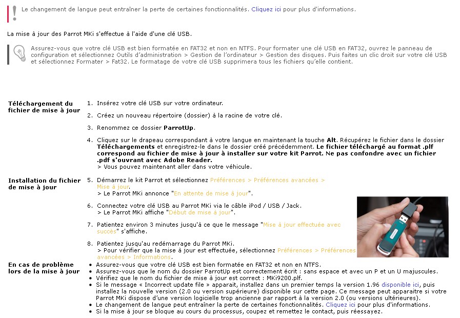 - Mise à jour logiciel des kits Parrot