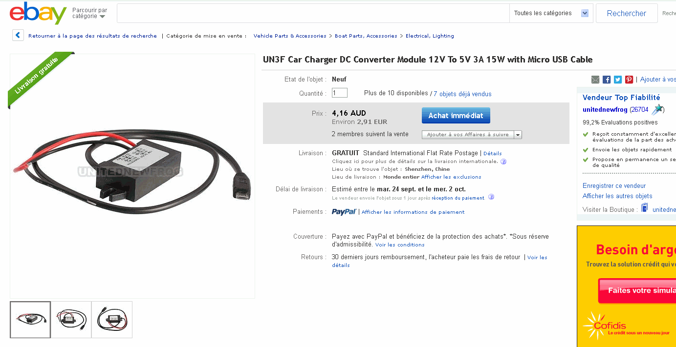 En ayant assez d'utiliser la prise allume cigare j'ai cherché et trouvé sur E-Bay ceci: