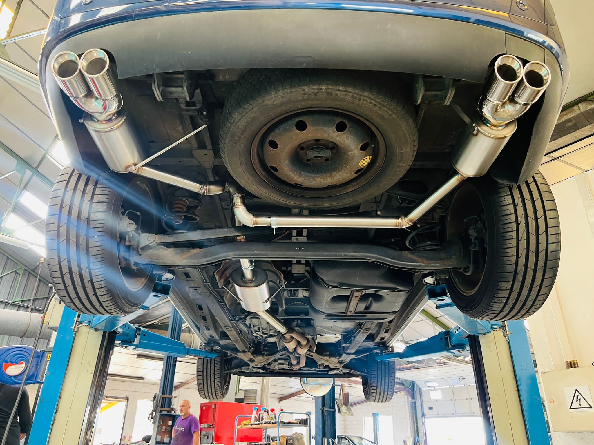 Des tests sont donc en cours et ProInox a réalisé des gabarits pour la partie intermédiaire et le silencieux : Le "Y" accueillant les canules d'origine :