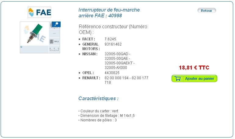 Je vais passer commande sur oscaro mais je vais vérifier le contacteur avant de le remplacer.