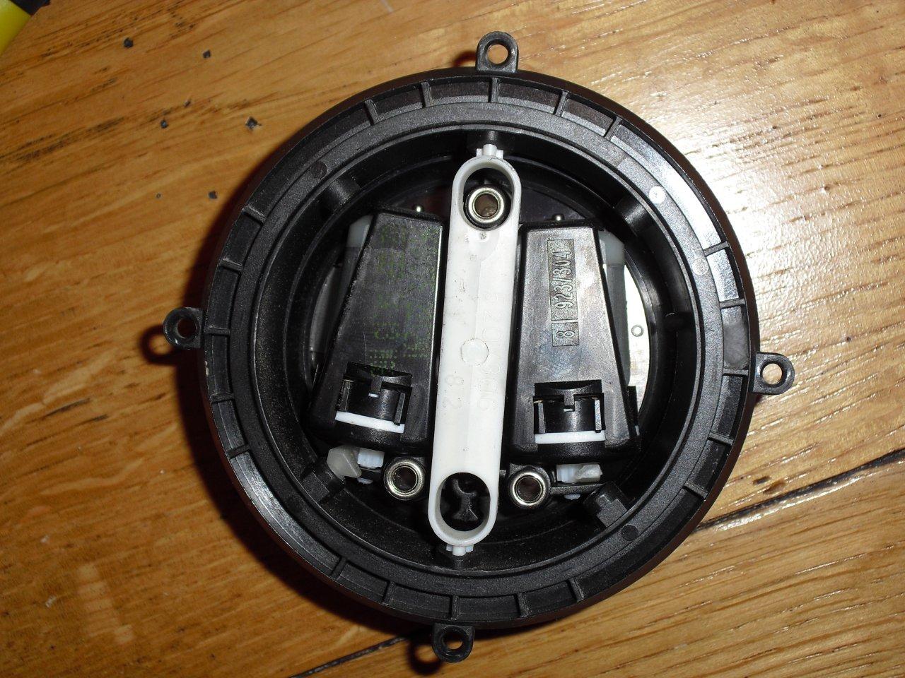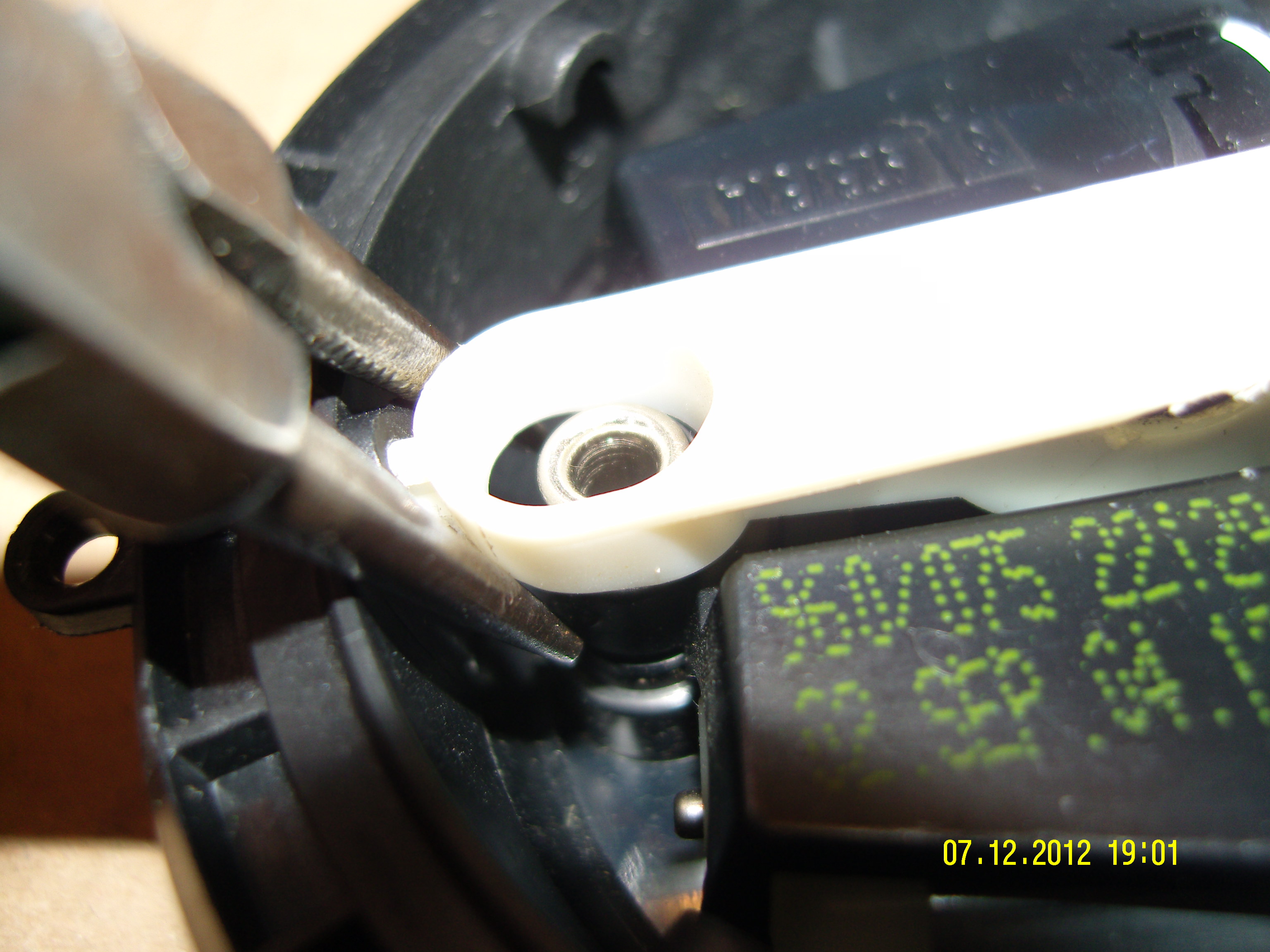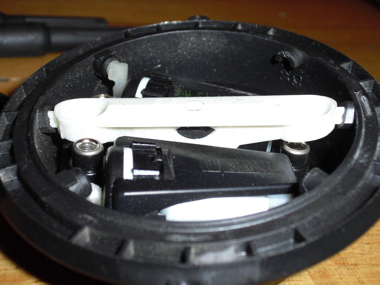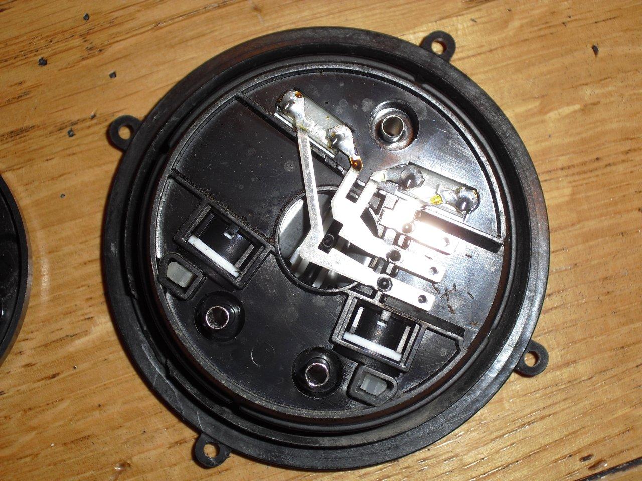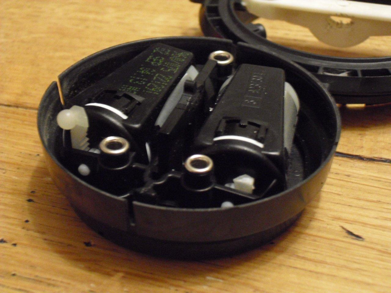 Verdict : un petit morceau de plastique long d'environ 1 ou 2 cm, sorte de tige crantée avec une rotule d'un côté, est cassée... du coup, l'un des deux moteurs de réglage n'entraîne rien du tout... Donc tout ça à cause de cette petite tige plastique crantée et sa rotule...