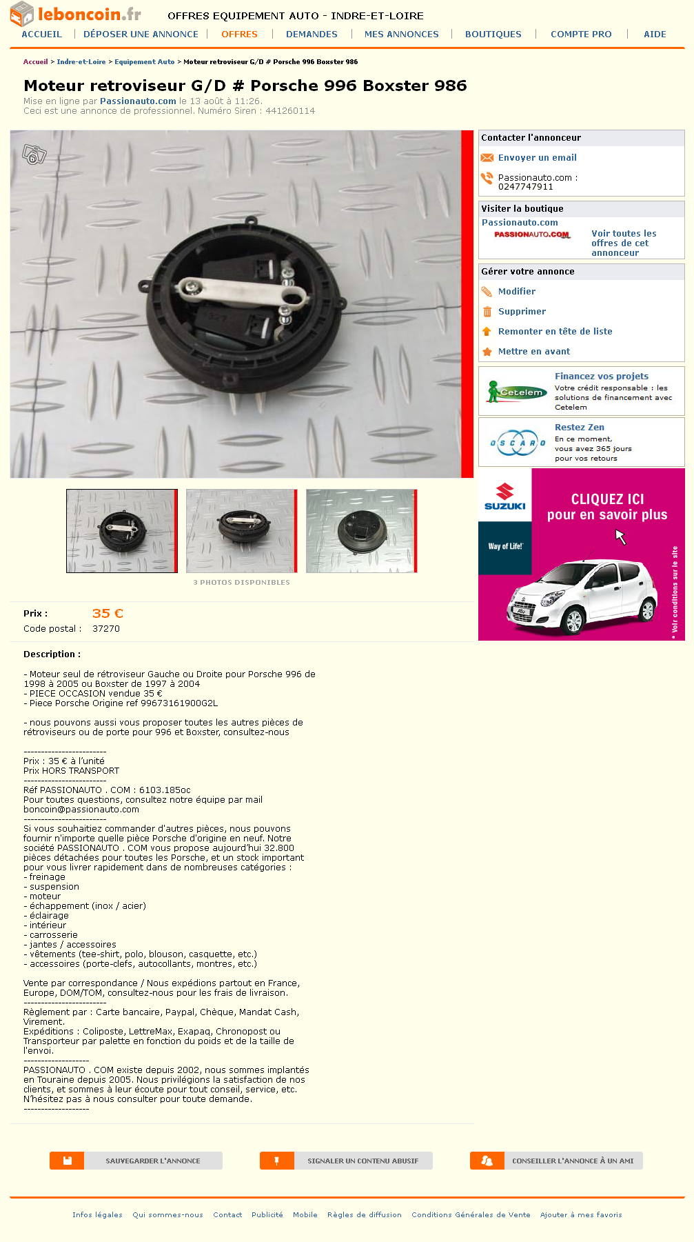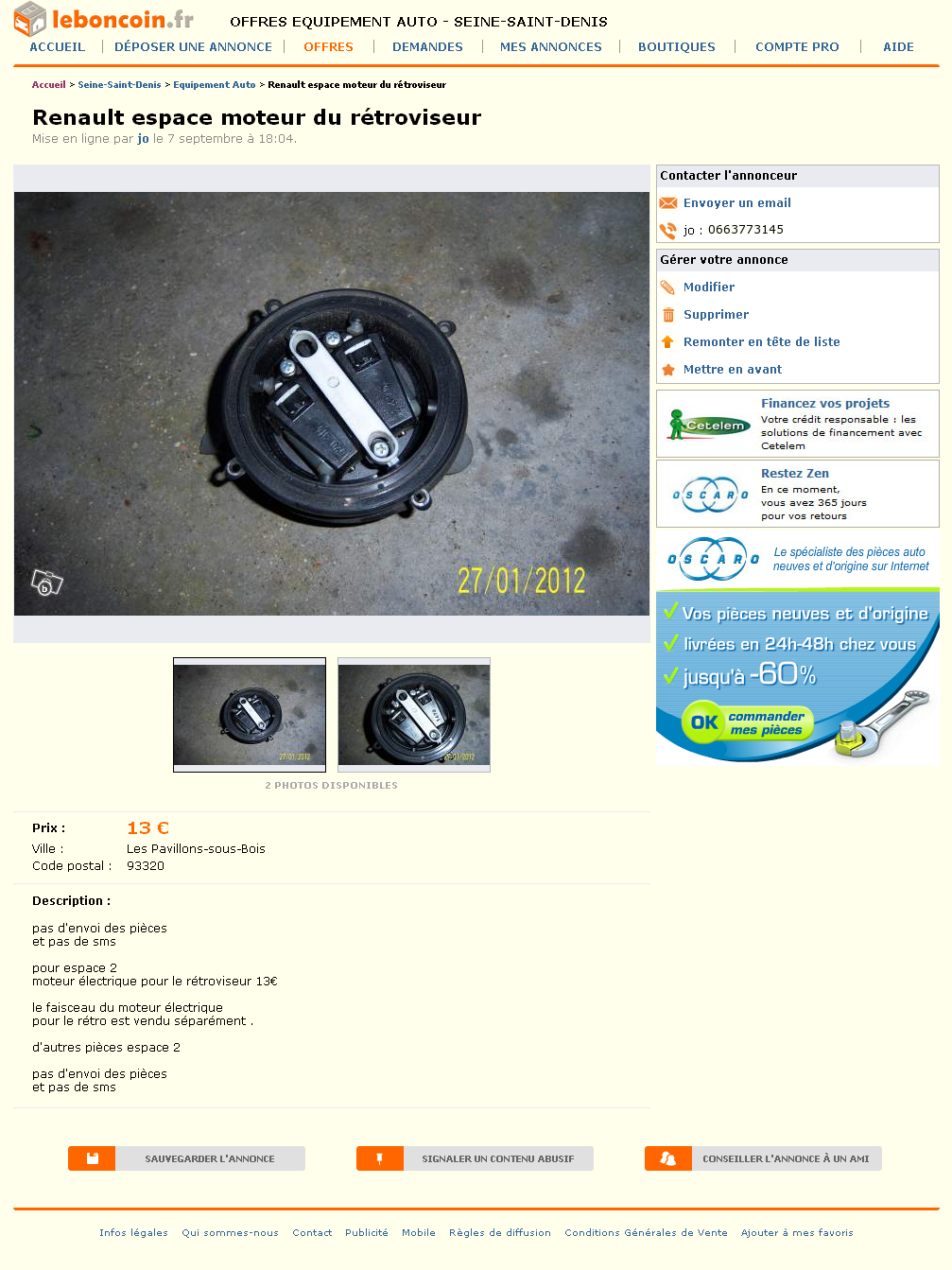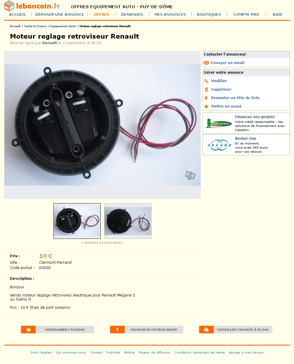 J'ai trouvé ce moteur sur le bon coin, mais pas tout à fait la même forme extérieur... et pour Porsche... à 35€. Par contre, j'ai vu celui-ci qui a l'air de ressembler sur ebay à 8€ : (ou le même à 13e sur le bon coin... même vendeur... :reflech: Ou encore à 10€ sur le bon coin : semble être le même ? Sinon, j'irai dans une casse...