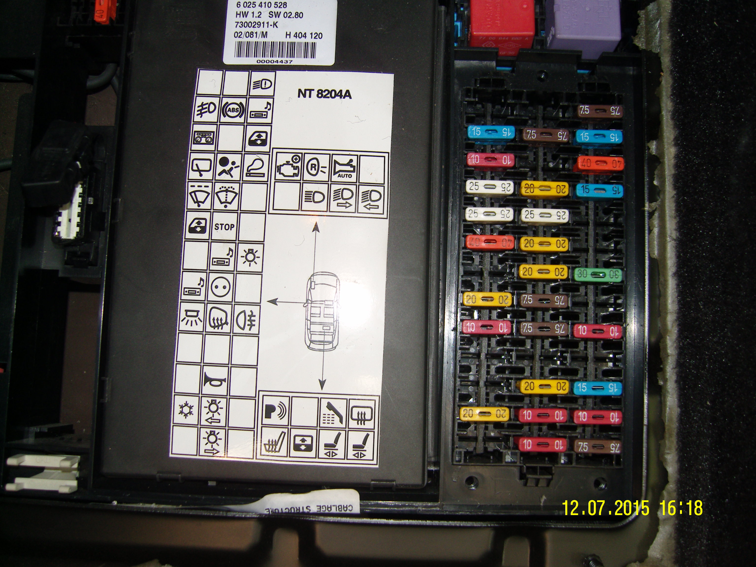 Référence NT8204A : plan support informatiques / Photos passager V6, dci, 2l / Photos AR V6, dci, 2l / Fichier fusible ok