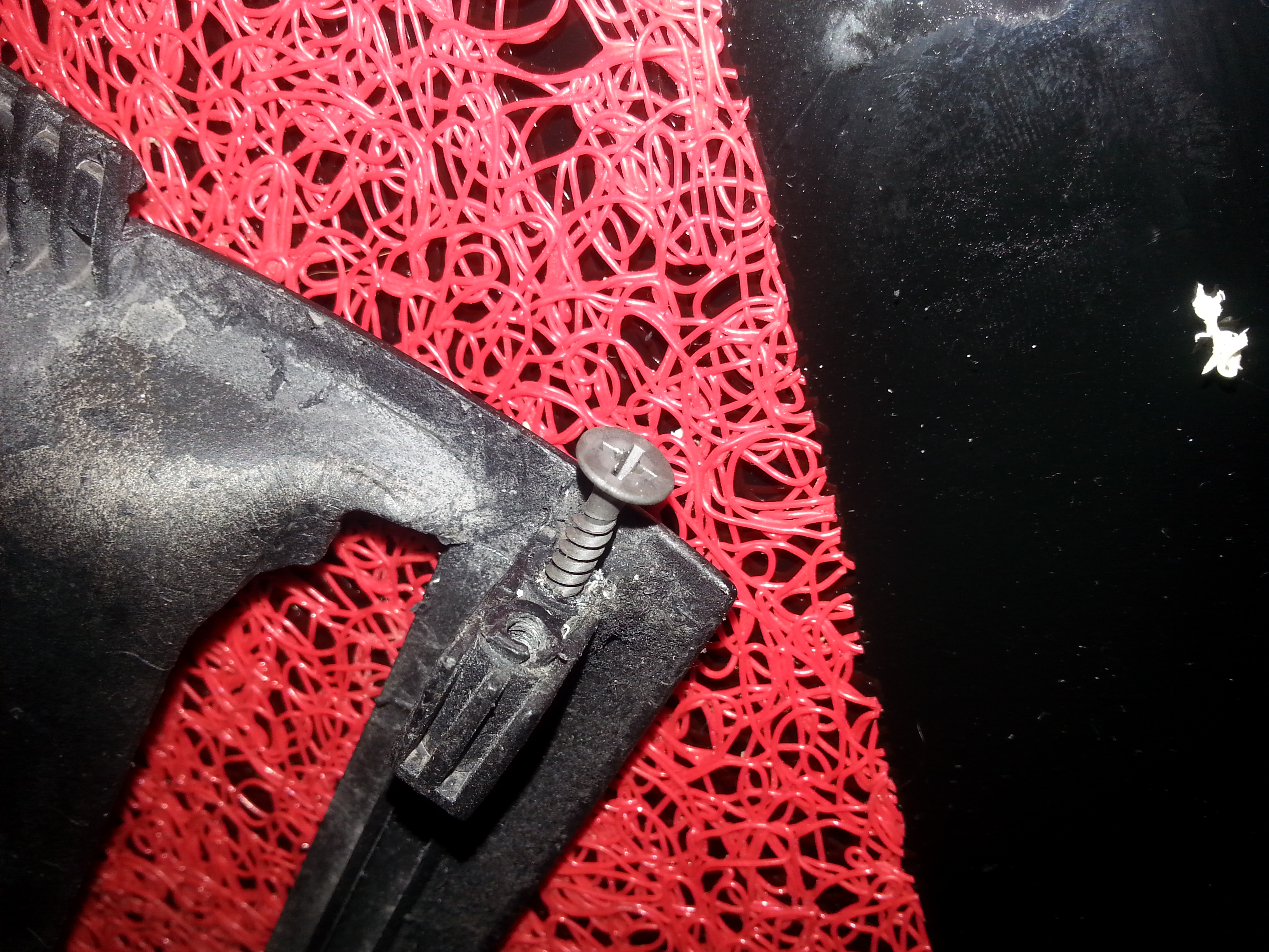 - Percer un trous au centre de l'emplacement où était le petit téton. Il doit être débouchant. Puis y visser la vis