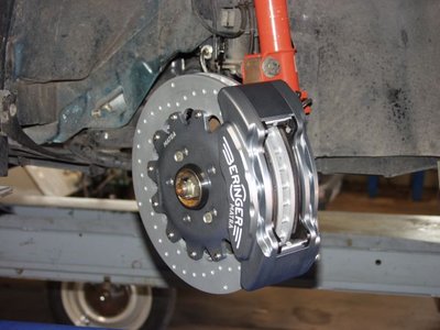 Je pense (enfin on verra à l'usage) passer rapidement à des étriers Brembo (identiques à ceux que j'ai devant ma poubelle) à l'avant associés à des disques 330x30 voire même 340x40 (mais ça oblige à passer en 18", et c'est un autre budget...)