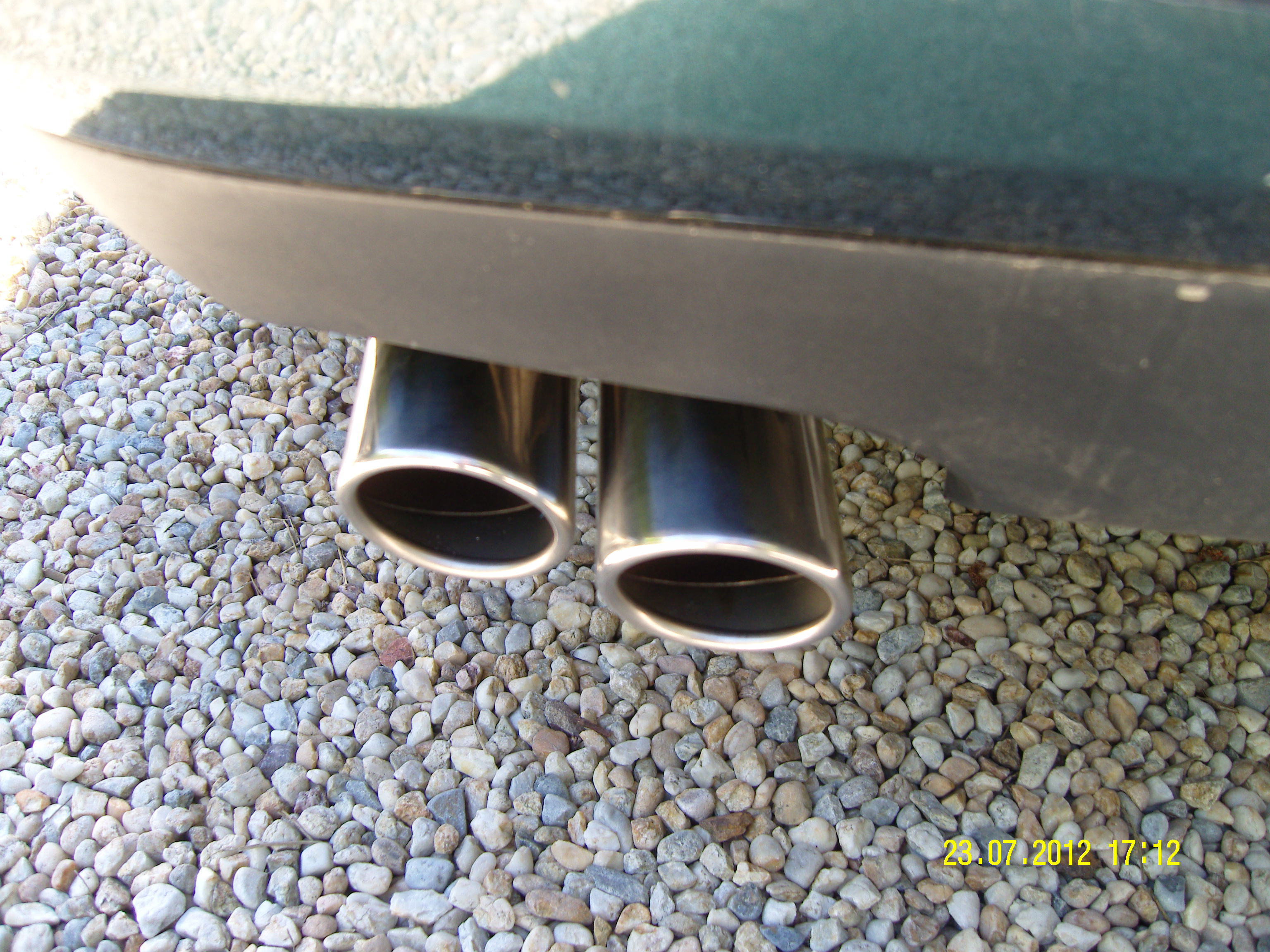 le silencieux s'adapte bien (fixations sur silent-blocs au bon endroit, tuyau coudé au dessus du train arrière...) par contre il est un poil plus court, ce qui fait que les sorties d'échappements sont un peu plus en retrait du pare-choc arrière
