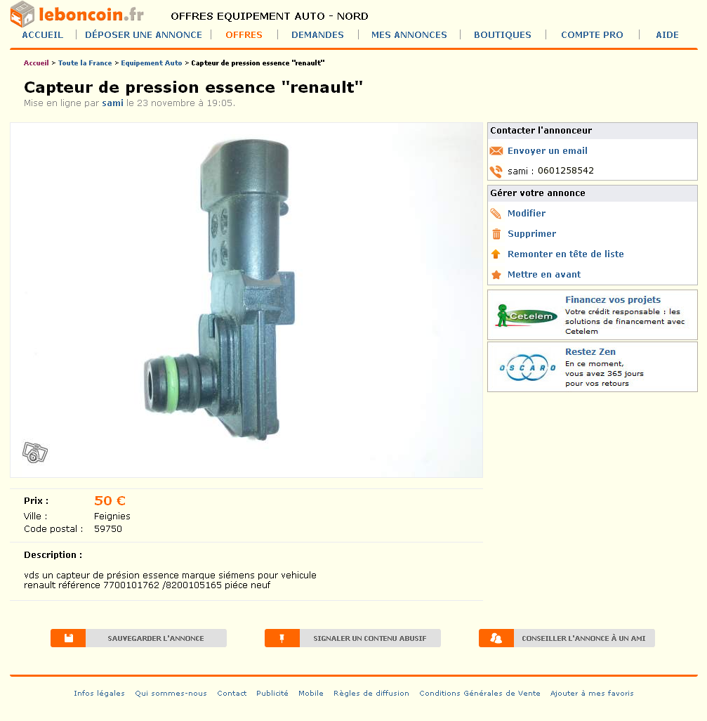 & Capteur de pression essence -renault- Equipement Auto Nord - leboncoin.fr 2012-12-02 19-11-29.png