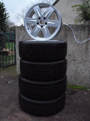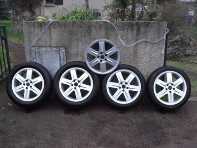 J'offre en plus une 5ème jante identique nue à faire réparer (légèrement voilée suite à coup sur un trottoir, mais sinon en bon état)