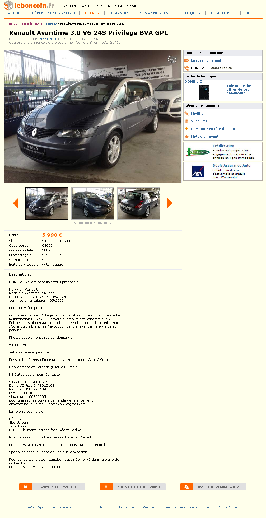 & Renault Avantime 3.0 V6 24S Privilege BVA GPL Voitures Puy-de-Dôme - leboncoin.fr 2013-01-06 13-04-06.png