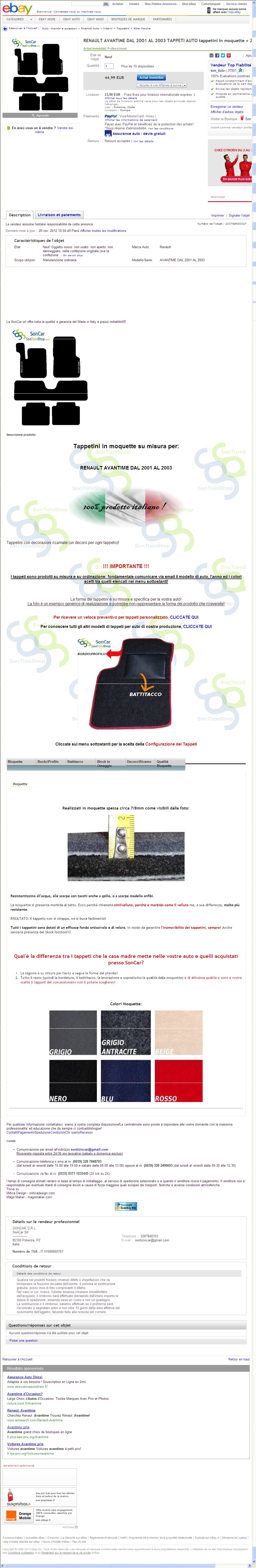 Le site de Sontizio shop (ou car) fait-il toujours les tapis AVT ??