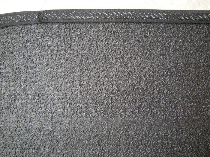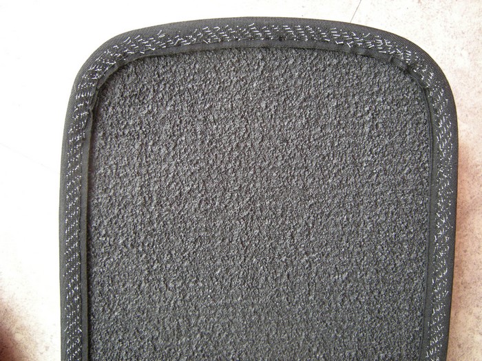 Fabriqué avec une moquette épaisseur 7/8mm comme on le voit sur la photo:
