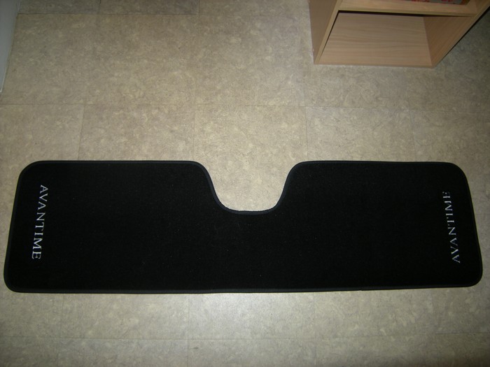 Notre demande était : jeu de trois pièces de tapis noirs bordés de rouge avec caoutchouc sous pied conducteur rouge également et marquage "Avantime" rouge.