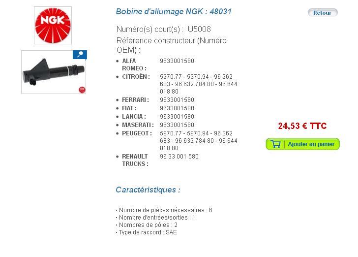 Du nouveau : Des bobines à 25€ en NGK sur OSCARO !!! A tester...