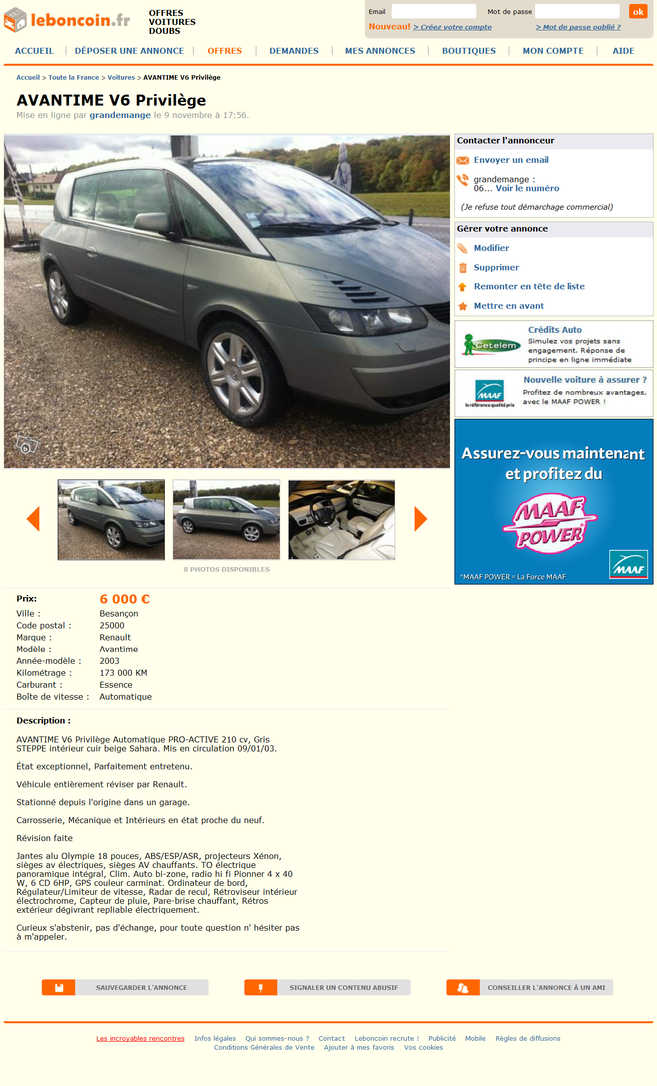De toute façon, si une perle se présente, ne réfléchi pas, fonce. Griotte est une perle rare dans sa présentation (V6, RDM, BVA, PE2 Gris Perle, RDSO, Barre de toit, Housse, 4 Pneus neige sur Rhode 17"= 3 exemplaires) , mais son kilométrage, je pense, en a rebuté plus d'un.