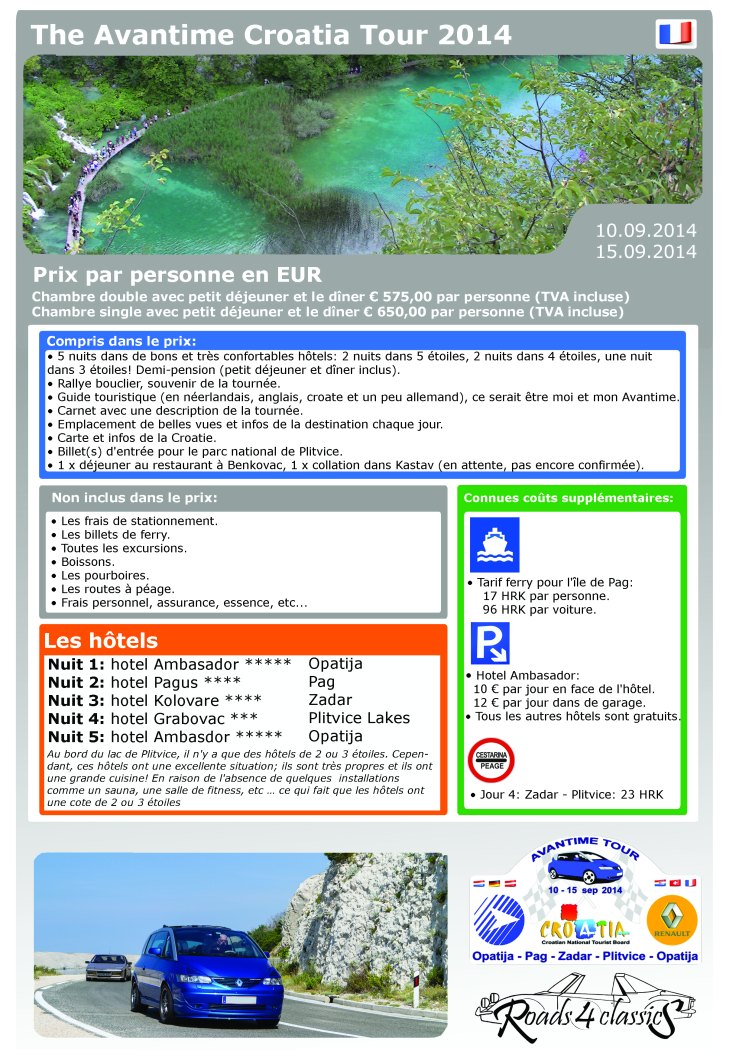For this year I would like to try to complete a group of a minimum of 20 persons (+/-10 Avantime’s) to participate in this year’s AVANTIME CROATIA TOUR 2014!