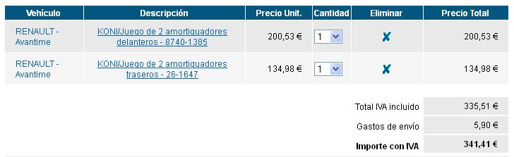 Ça y est, j'ai acheté des amortisseurs Koni, j'ai profité d'une offre spéciale sur Oscaro.es, et j'ai payé les quatre 341€, presque moitié prix... si vous voulez acheter des pièces, il vaut la peine de jeter un coup d’œil sur la page espagnole.