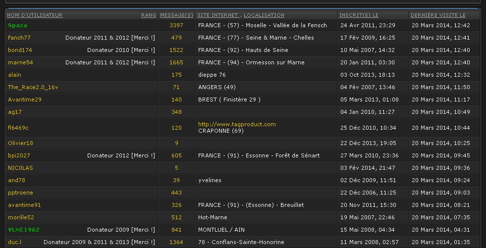 Spaza a écrit :Les chiffres, c'est pour avoir le tri par département .... Tout le monde ne connait pas le numéro des départements .... surtout des étrangers :mrgreen: