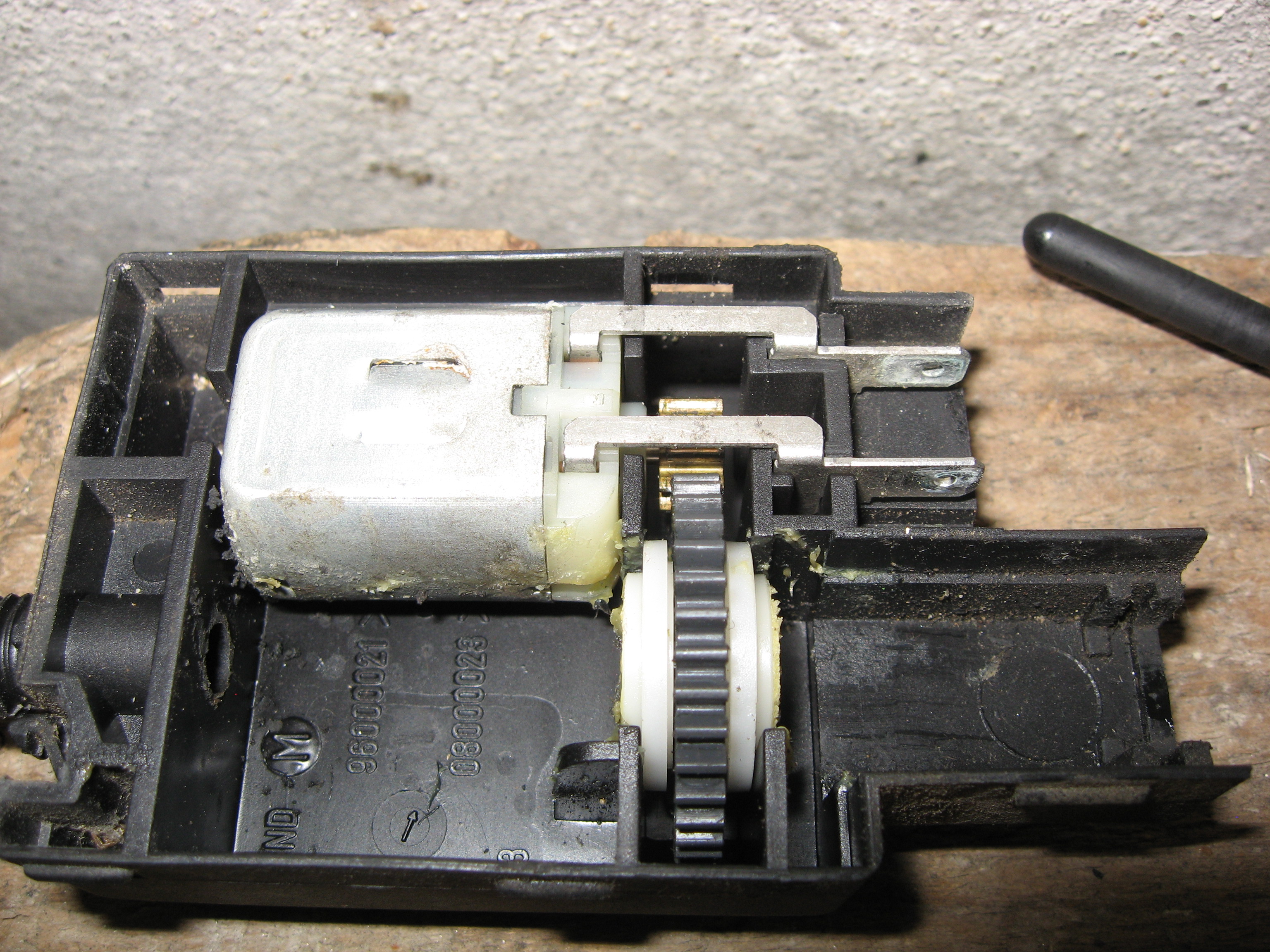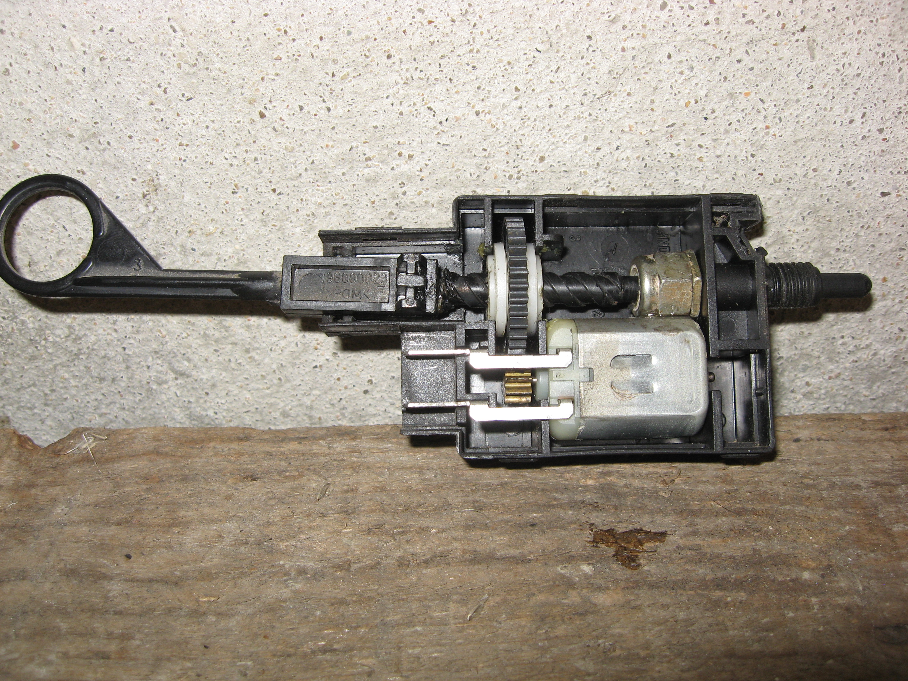 Je me suis penché sur le problème de casse du verrouillage trappe à essence. Donc comment éviter qu'il ne casse. Car même une réparation ne tient pas toujours bien longtemps. Je me suis dit qu'il fallait diminuer la force du moteur qui est surdimensionnée à mon avis pour le travail à fournir.