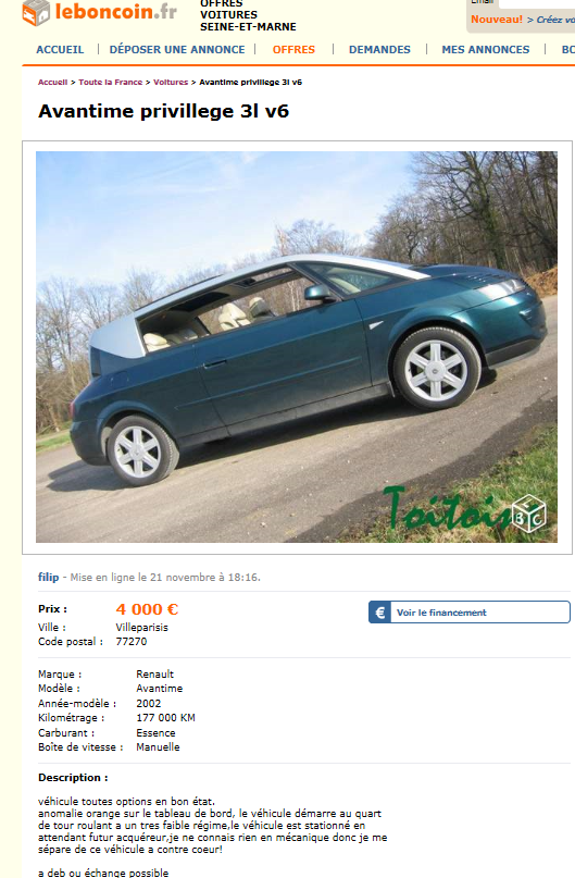 Par contre 4000€ pour un AVANTIME qui ne roule pas.... c'est pas un peu cher ?