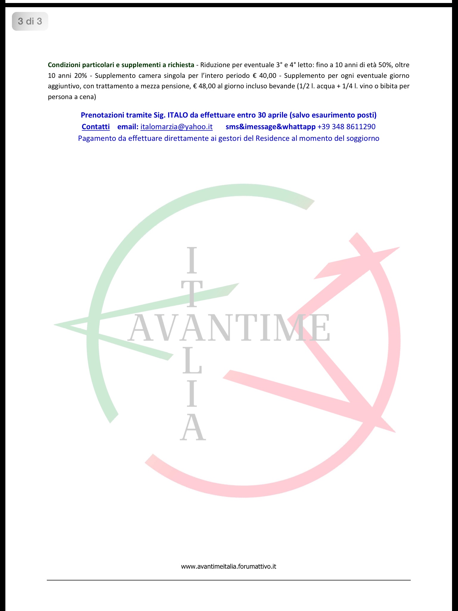Prenotazioni tutti tramite sig.ITALO da effettuare entro 30 aprile (salvo esaurimento posti)