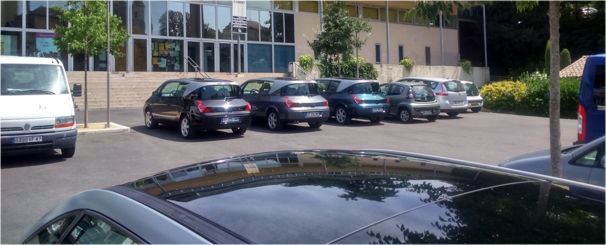La terrasse était bien sympa malgré la température estivale et l’environnement bien agréable : Pendant ce temps l'avan(time)team égaye ce parking de véhicules tous aussi tristounets les uns que les autres Après une petite balade pédestre et bucolique dans le parc attenant (où nous apprîmes l'origine de l'expression conter fleurette que les anglais nous ont d'ailleurs repris avec le verbe flirt qui est revenue sous le verbe flirter en français...j'en vois déjà qui dorment