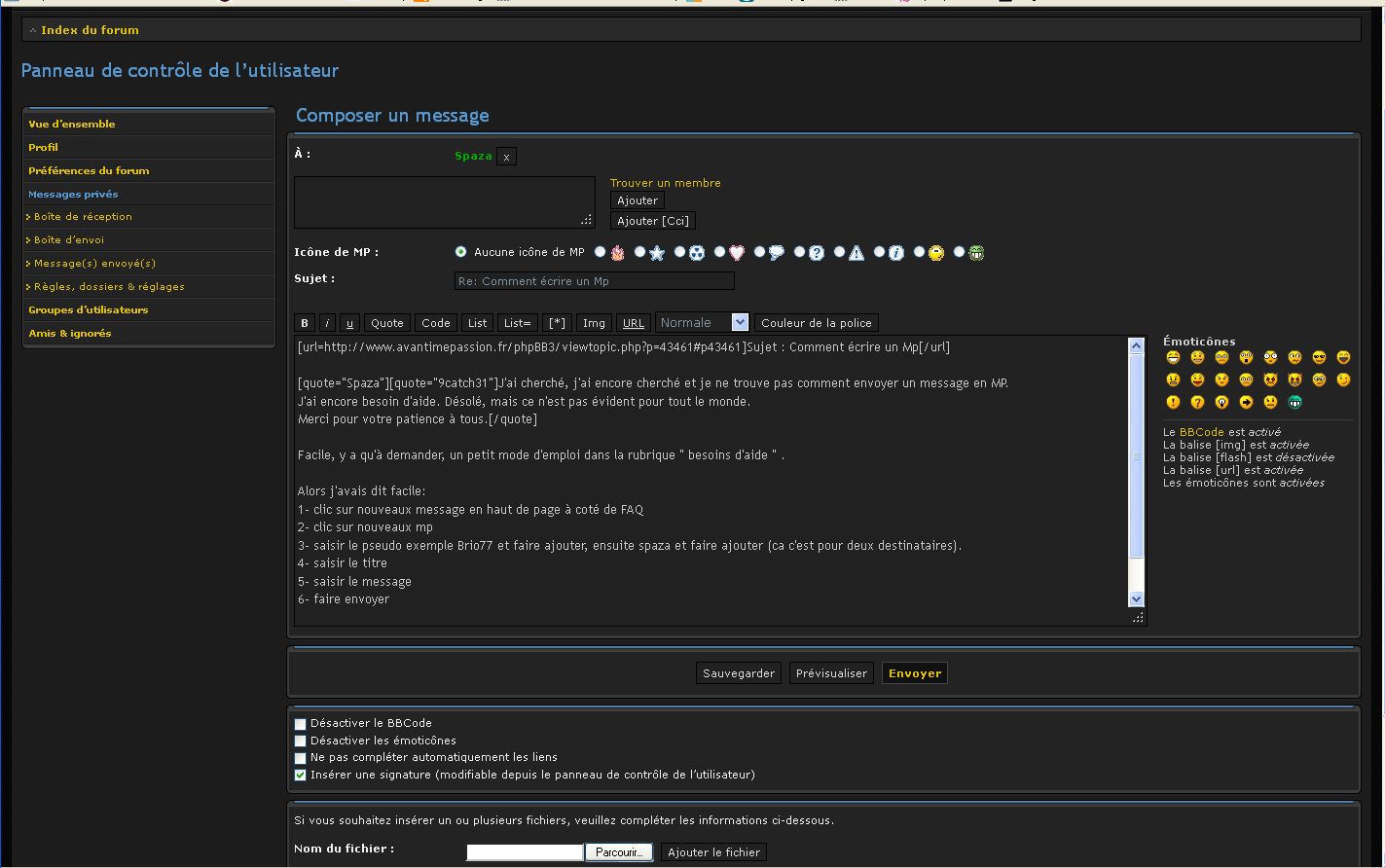 Si vous souhaitez discuter en privé avec un des membres, par exemple pour échanger des coordonnées et données privées, utilisez les MP..