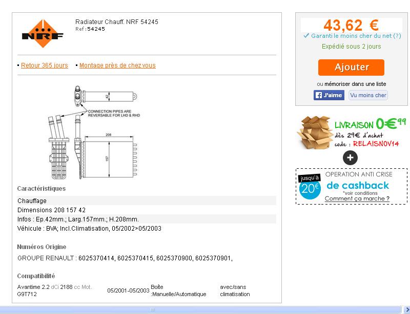 Ça m'avait permis aussi d'avoir le pressostat OR de Clim à 27€ (pour Twingo 1) au lieu de 160€ chez Renault alors qu'il n'était pas rangé dans les Avantime sur Oscaro.