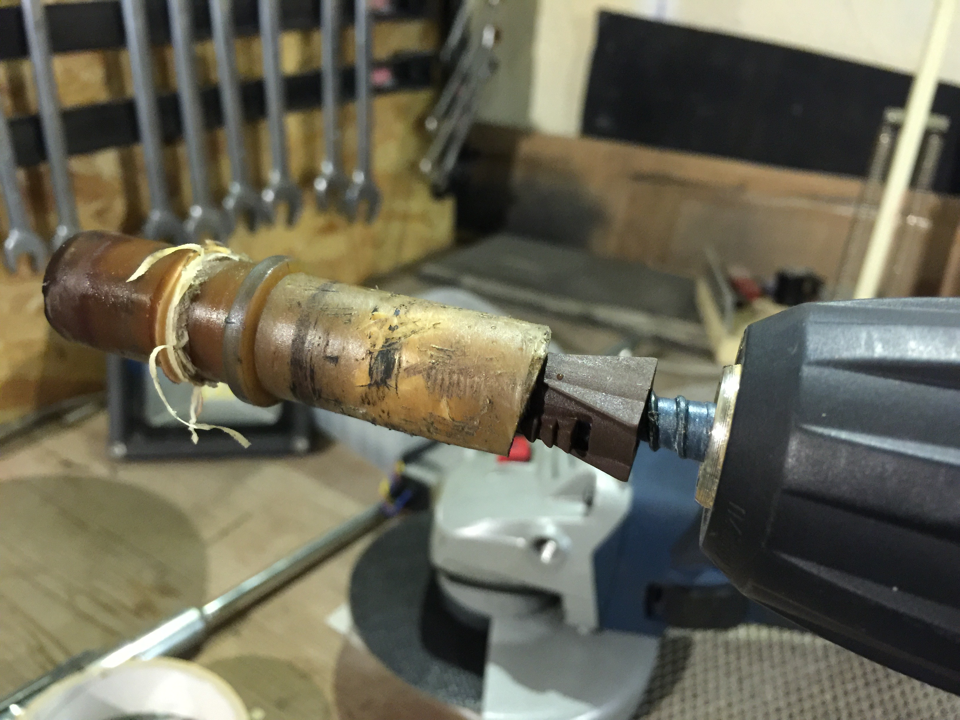 - on monte le tout sur la visseuse et on visse en tirant vers soi