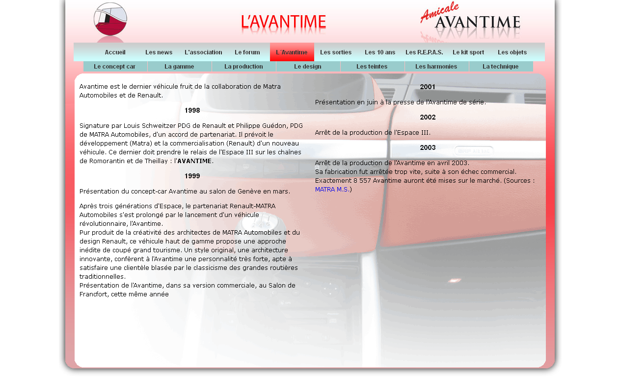 Bon je n'ai pas cherché bien loin. Je suis allé voir sur le site de amis de l'Amicale : http://amicale-avantime.com/avantime2.p ... istorique2