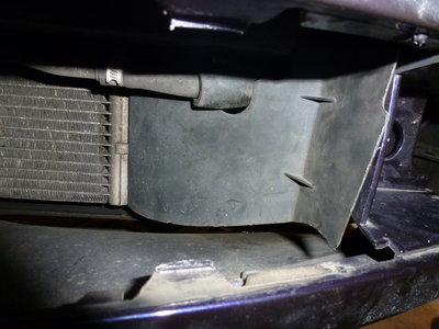 Calandre déposée, cela n'aide pas pour atteindre l'une des 2 vis Torx fixant le feu D (celle côté anneau de remorquage) : le compartiment est cloisonné.