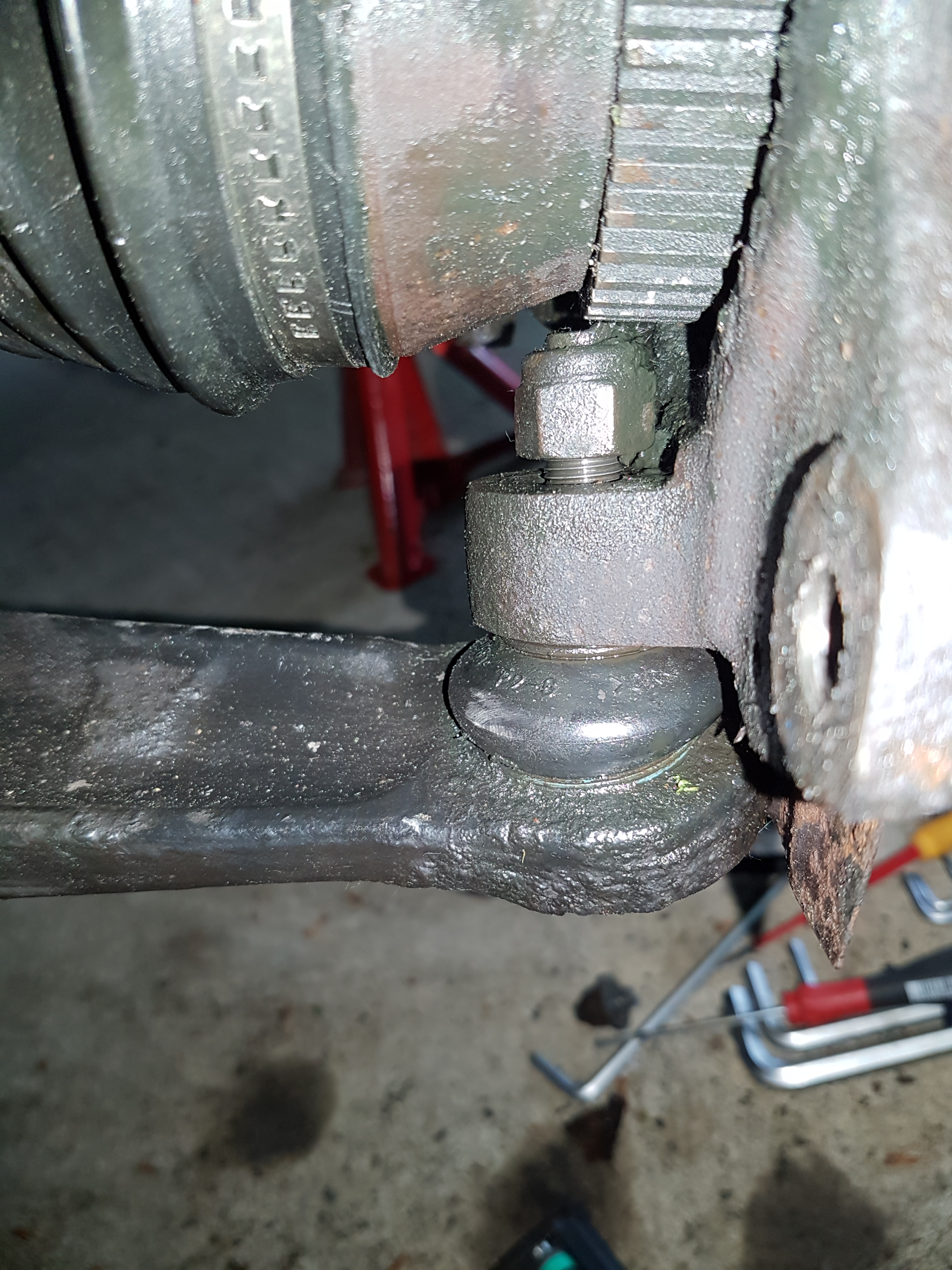 Pour désengager la rotule du pivot il te faudrait soit un arrache rotule, soit une fourchette du même nom. Si tu n'a pas , avec deux marteaux un contre la rotule en contre-coup, et une bonne frappe sur le coté du pivot avec l'autre. En dernier recours le chalumeau sur le coté du pivot, aussi pour les vis grippées. Bonne chance