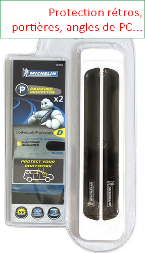 Heureux pour toi que cela fonctionne, maintenant parfaitement :D . Pour ce qui est de la protection de porte étroite, j'ai été croisé, tout doucement, par un autre véhicule dans un chemin si étroit que mon rétro gauche s'est replié avec le contact du rétro de l'autre engin. J'ai trouvé, à l'époque, des bandes adhésives noire, que j'avais placé juste sur la zone de contact, sans que cela trouble l'aspect de la bête.Il y a juste l'inscription, discrète, de :michelin :wink: