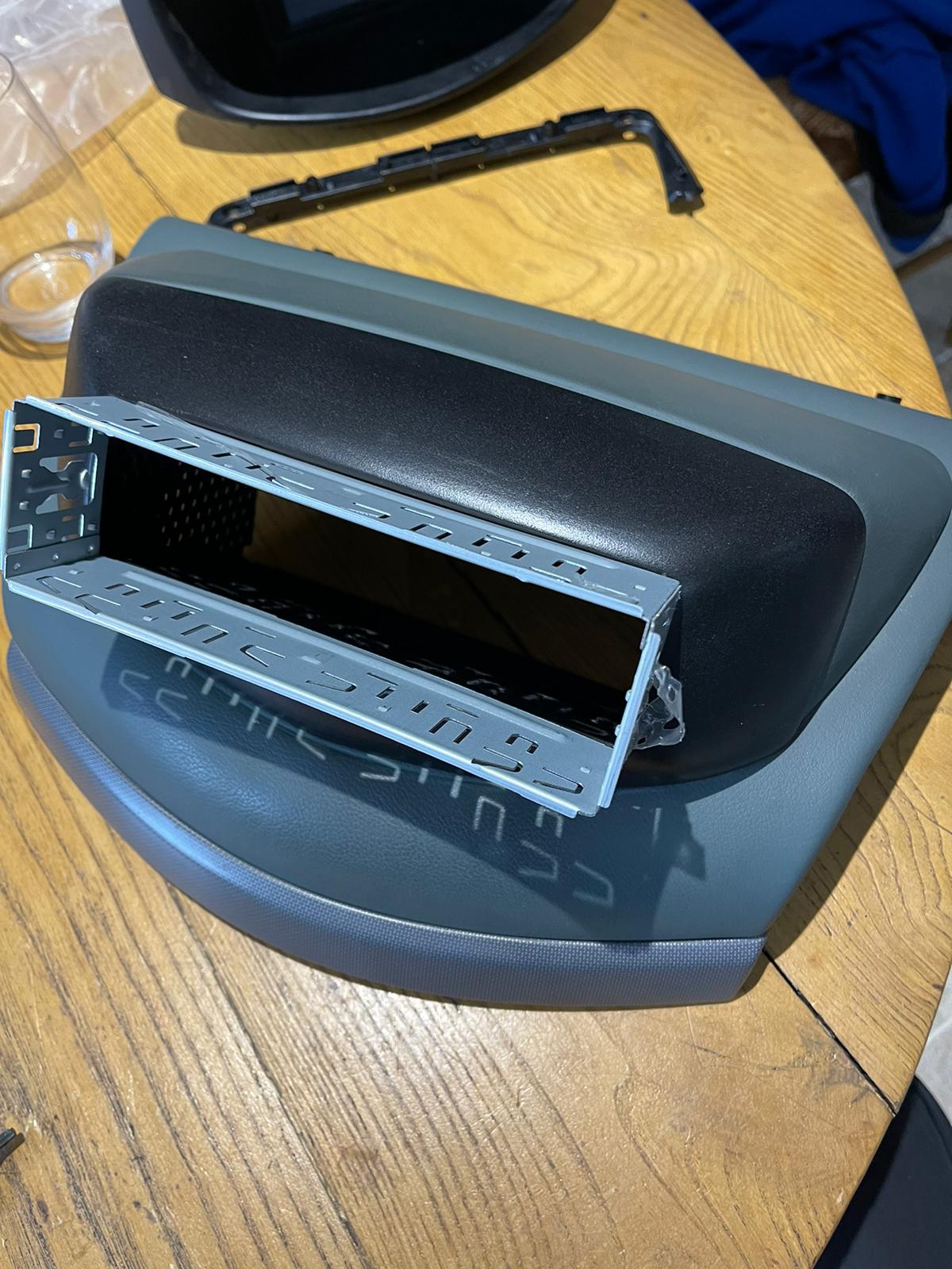 Il faut donc simplement glisser votre poste 1 DIN directement et le sécuriser avec, au minimum, une vis de chaque cote. Cette méthode présente en plus l'avantage de permettre de régler le "tilt", aka angle horizontale. C'est facile grace a la structure en nid d'abeille, qui doit vous permettre de glisser des M5 ou M6 sans soucis.