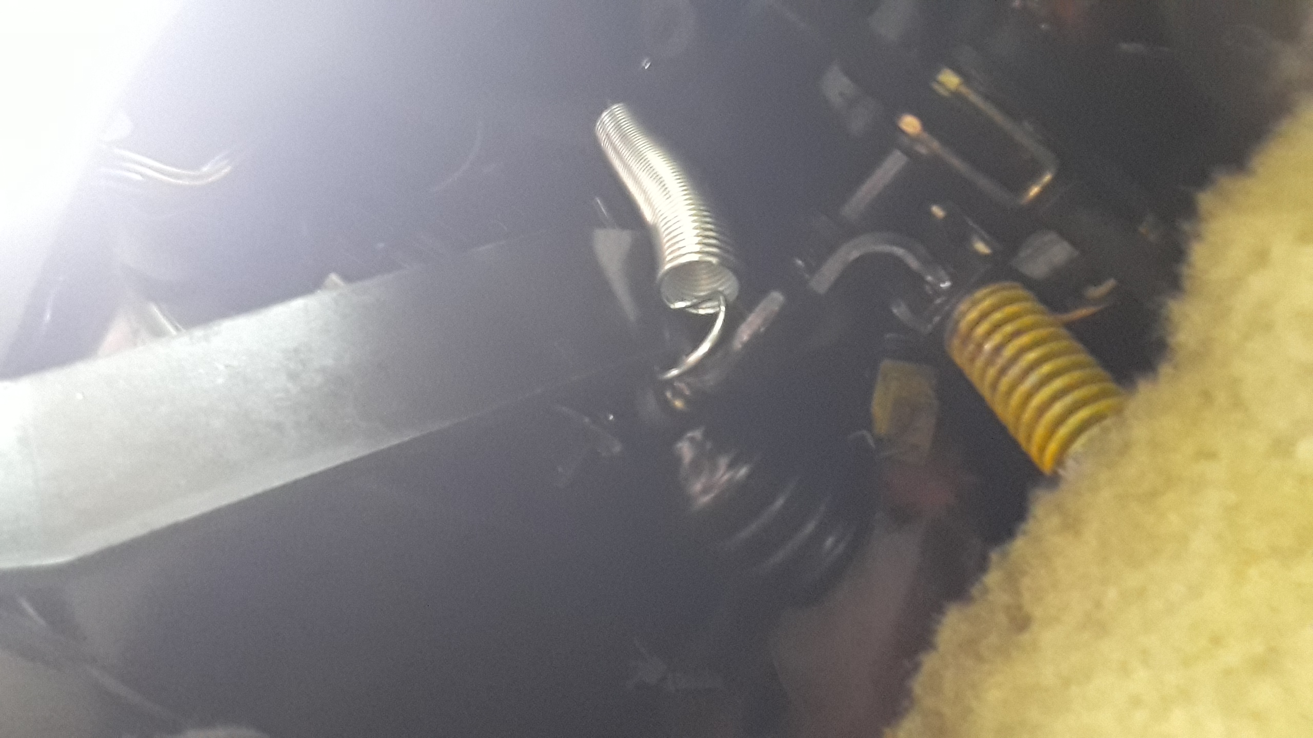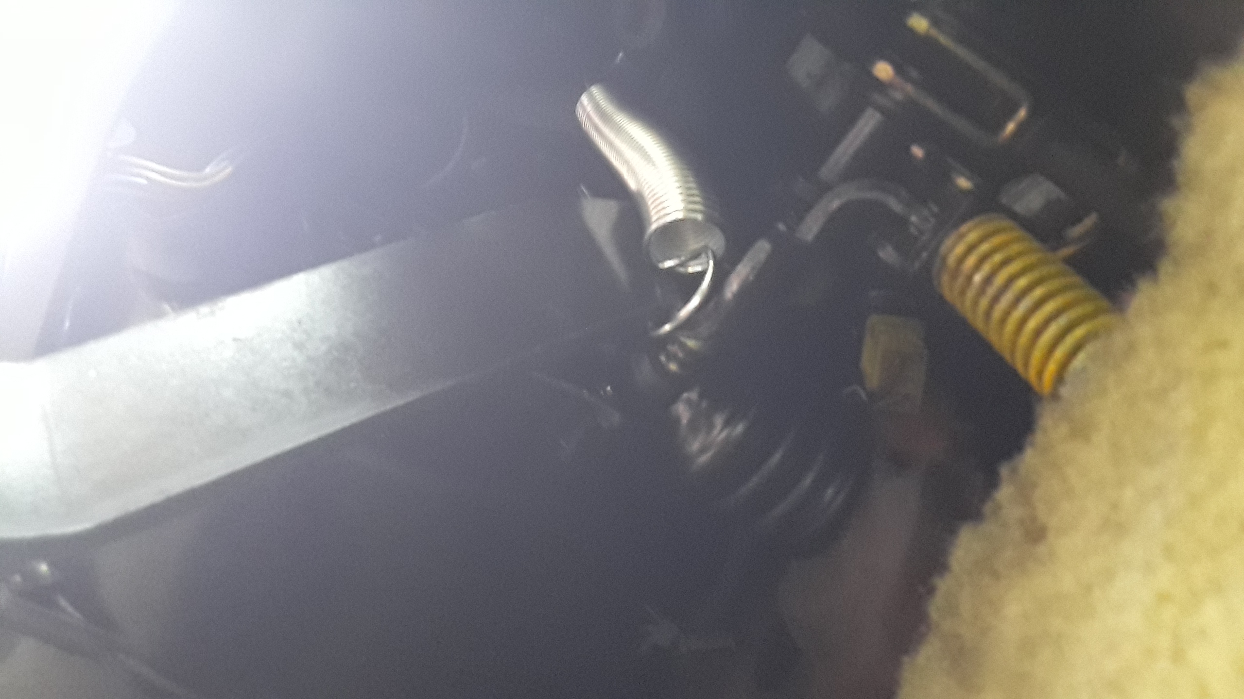 Avant de trouver une solution de pouvoir purger le circuit après le remplacement prévu de l'émetteur , et pour ne pas avoir la pédale d'embrayage qui reste au plancher, surtout lors de manœuvre de stationnement, j'ai joué les "MacGyver" :) j'ai ajouté un ressort de rappel !! Bien sûr c'est du provisoire