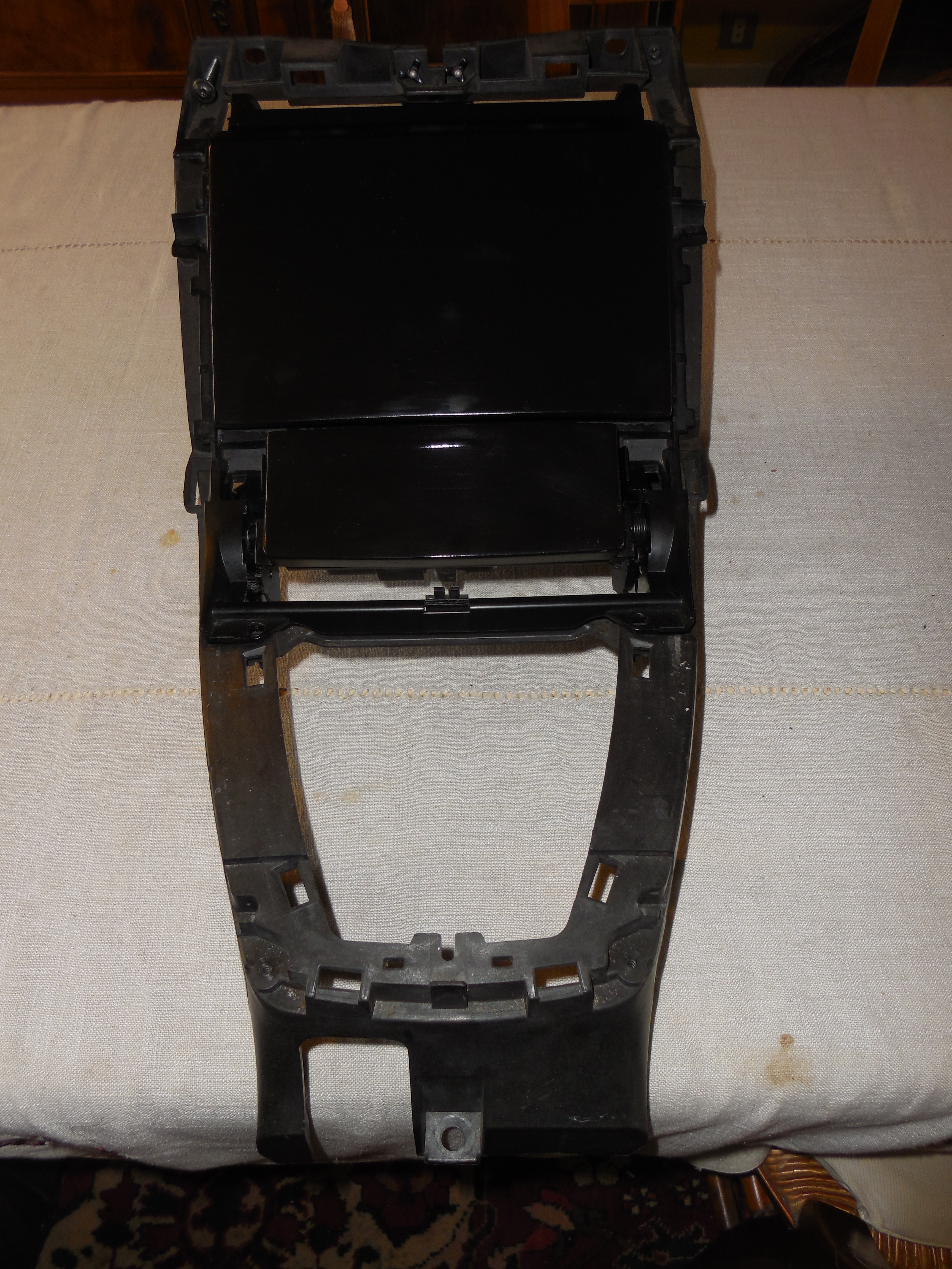 C'est partie pour l'adaptation du Parrot smart.....j'ai commencé l'intégration dans l'emplacement de l'autoradio et GPS et j'ai du tailler un peu le plastique et viré la barre transversale pour faire rentrer le double-din.