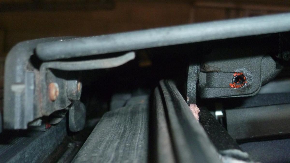 edit : Je viens d'aller y rejeter un coup d’œil, j'ai commencé à démonter la vis coté conducteur et la le déflecteur commence à remonter !! J'ai pas tout compris, il y avait une petite patte en plastique qui semblait empêcher le bon mouvement en bloquant contre la "rondelle" carrée sous la vis, j'ai essayé de bouger tout ca, ca a fait "crack"